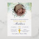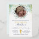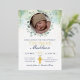 Invite your guests to your baby's Christening with this beautiful eucalyptus, photo template, and watercolor template invitation. With real gold foil details that accentuates the watercolor greenery at top surrounding photo.