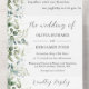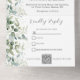 Stylish all in one wedding design featuring a eucalyptus greenery border on a clean white background. Includes RSVP with a scannable QR code that you can link to your wedding website. Generate your own unique QR code via the "personalise this template" feature on the product page. Add your URL to the area provided and a brand new QR code will generate on the design just for you.