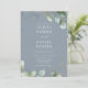 This eucalyptus and dusty blue wedding invitation is perfect for couples who love natural elegance and soft, romantic colours. The muted dusty blue background pairs beautifully with delicate watercolor eucalyptus leaves, creating a calm, timeless look that feels both modern and organic.