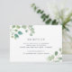 Designed to coordinate with our Eucalyptus watercolor floral wedding collection, this elegant botanical reception card features sprays of watercolor painted eucalyptus leaves surrounding your wedding reception details including timing, venue and address.