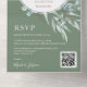 This All in One invitation makes preparing your wedding invitation so much easier. In this folded card, There are wedding invitation & RSVP detail. With the QR code and website, your guest can easily respond online. With anything editable, you can also put your phone number for guest to reply by phone as well.