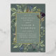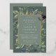 Chic botanical rehearsal dinner invitation features a border of lush sage green botanical leaves and watercolor eucalyptus foliage with gold foil trim. Personalise with your ceremony rehearsal and dinner details in modern lettering on a tone on tone moss green background.