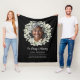 Personalized memorial photo blankets offer a comforting and heartfelt way to honor the life of a loved one. This custom "In Loving Memory" blanket design features a centered photo framed by a delicate watercolor eucalyptus and white floral wreath, set against a rich black background for a timeless and elegant tribute. Below the portrait, customizable name, dates, and a touching remembrance quote add a meaningful personal touch that brings warmth and emotional significance to the piece. Ideal as a sympathy gift, keepsake, or display at a celebration of life or funeral service, this tribute blanket provides comfort while preserving cherished memories in a visually stunning way. The calming botanical elements and minimalist layout create a modern yet respectful aesthetic suitable for any memorial setting. Whether draped over a chair, displayed during a service, or kept as a lasting memento at home, this custom memorial blanket serves as a beautiful way to keep a loved one’s memory close.
