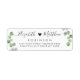 Elegant, Modern Watercolor Eucalyptus Hand Lettered Script Wedding Return Address Labels. Featuring a beautiful hand-written script bride and groom's first name template with swash-tail font in black, little heart shape between the names, green watercolor eucalyptus arrangement on white colour background. Easy to personalise them with your names and return address info.