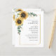 Create a modern Sunflower Floral Budget Wedding details enclosure card with this cute template featuring beautiful rustic floral bouquet, geometric gold frame, with modern simple typography.