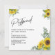 This simple suite's distinction is due to the modern, handwritten script font used for key phrases, and the beautiful floral images. In this piece, the elegant script was used to create a graphic depicting the word "Postponed". The corners are accented in bouquets of watercolor sunflowers and eucalyptus. Coordinating bouquets also appear on the back. Use the template fields to add your personal details and make this modern design your own. Pieces with alternate wording are also available. Please reach out with any special requests or for customising assistance. // 151 //