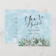 A beautiful watercolor, painted in a blue sky design, provides the backdrop for this invitation... trimmed with pretty eucalyptus and greenery, and finished with simple elegant typography script. Your guest will find a matching watercolor background on the back, with all the shower details.