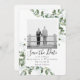 Let your friends and family know that you have set a date for your wedding with this beautiful watercolor eucalyptus Save the Date card. The photograph of the models is for illustrative purposes and can be changed to one of your own.