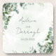 Celebrate your special day with timeless elegance using this beautifully designed Wedding Coasters. These Coasters strikes the perfect balance between classic proportion and modern style, making it an ideal choice for your wedding. Featuring a delicate green eucalyptus design, the artwork brings a fresh, natural feel that suits a wide range of wedding themes—from rustic and bohemian to modern minimalist. The soft watercolour background adds a gentle, romantic wash of colour, creating depth without overwhelming your details. Subtle gold speckles are scattered on the edge of the design, adding a touch of understated luxury.