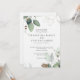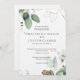 This beautiful design and simply elegant invitation printed on a textured paper stock is perfect for a wedding during any season. It features gorgeous greenery, eucalyptus, with a hint of gold