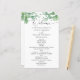 Create a polished ceremony experience with this double-sided wedding program featuring soft watercolor eucalyptus greenery across the top for a fresh, modern botanical look. Front side: a warm Welcome header with a clean order of ceremony layout (processional, readings, vows, rings, unity candle, recessional, and more). Back side: a dedicated Wedding Party section to list parents, officiant, maid of honor, bridesmaids, best man, groomsmen, flower girl, ring bearer, and any special roles. This design pairs elegant script with classic typography. Perfect for greenery, outdoor, garden, botanical, and modern classic weddings.