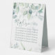 This table tent sign is the perfect size for our tables and easy to read. I also like the material it is made with and no worries about it falling or sliding. Just perfect! Everything about this card is perfect. I like that it says what we want on the front and on the back we were able to personalize a message for our guests.