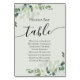 Eucalyptus Wedding Table Seating Chart Table Name Number