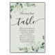 Eucalyptus Wedding Table Seating Chart Table Name Table Number