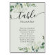 Eucalyptus Wedding Table Seating Chart Table Name Table Number