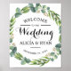 This is to welcome your guests sign featuring greenery eucalyptus flower design.
