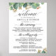 This is a beautiful portrait poster welcome wedding program sign featuring eucalyptus script text.
