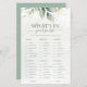 Add a playful twist to your wedding celebration with this customisable "What's in Your Purse?" game! Featuring a beautiful watercolor design with greenery and gold accents, this game will keep your guests entertained and guessing. Personalise the game with your ideas to create a unique keepsake for your special day. Perfect for bridal showers, rehearsal dinners, or wedding receptions, this game is a fun and interactive way to celebrate with your loved ones.