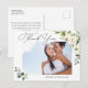Eucalyptus White Roses Wedding Photo Thank You Postcard