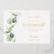 Watercolor Bridesmaid proposal Eucalyptus Script with a modern minimalist botanical design on a white background with popular typography you can easily edit.