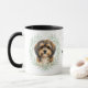 "LOVE MY HAVANESE DOG" declares this mug for the Havanese dog owner. Each side of the mug has a portrait of an adorable little Havanese framed by soft green watercolor eucalyptus leaves. Between the two images is the text, which may be easily customised, or even removed by you, and your monogram or name.