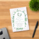 This elegant baptism invitation features a silver faux foil cross surrounded by a silver wreath adorned with watercolor eucalyptus leaves. The text is in elegant eucalyptus green handwriting calligraphy and charcoal gray italics and sans serif font on a white arch shape surrounded by eucalyptus sprigs. An ideal choice for a stylish, gender-neutral baptism invitation.