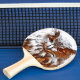 Overall, it's a nice product but for what you pay the quality isn't very good. The way it's glued together, as you can see in the pictures, is messy, the glue is visible and shiny, there's some ink staining that looks like black fluff but isn't, it won't come off. On the paddle's black surface there are also little white marks here and there. It's not too easy to show in the pictures because of the flash but I tried to showcase the little white blemishes that ruin a smooth black surface. This was meant to be a gift and it just looks sloppily put together unfortunately. A few imperfections that mar what could have been really great. The printing was neat.