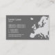 A business card with a map of Europe. Company details on the front with name and contact details on the back on a grey tonal version of the design.