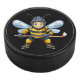 European honey bee (Apis mellifera), cartoon cute happy bee hockey player playing sport, bee Ice hockey player skating and shooting the puck