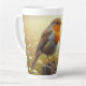 Colourful European robin stands gracefully on a wooden fence amidst a blooming meadow