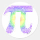 Evan, age 5, wanted a shirt with his favourite number on it in rainbow colours. I made two designs for him to choose from. This is the first, featuring a pi shape filled with the digits of pi in rainbow colours. This sticker is available in 2 sizes.