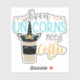 Here's a cute contour sticker that declares "Even Unicorns Need Coffee". A unicorn with stars emerges from a coffee container. Colours used include teal blue, grey, and orange.