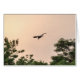 Between trees and amid warm evening colours, a bald eagle approaches it's nesting tree.