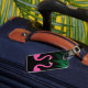 This tropical luggage tag is decorated with a fuchsia flamingos and palm leaves on the front, and all your personal information on the back, making it perfect for your next vacation.