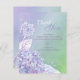 Elegant, lovely hydrangea flowers in pastel shades (lavender, light pink and blue) and soft green & purple ombre background illustrated on custom Wedding Thank You Flat Cards. ((You can find the matching wedding essentials & favours in this store, Bridal Heaven. Contact ujean4791@gmail.com for custom work and/or coordinating wedding stationery.))