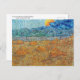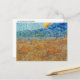 A fine art postcard with the post-impressionist painting by the Dutch artist Vincent Van Gogh (1853-1890), Evening Landscape with Rising Moon (1889). A nighttime scene of the wheat fields with a bright orange moon rising above the hills.