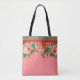 Elegant floral garden inspired fashion tote. This lovely quality reusable tote is embellished with beautiful hand painted floral patterns and vintage roses. A stylish carry-all for your day to day errands. Perfectly suited for the office or a trip to the gym - this quality custom carry-all is appropriate for every occasion. A truly elegant bright pink rose blossom pattern on a quality tote bag. Customisable in your choice of background colour, (this item shown in a dusty coral pink) size and style options. Practical and very stylish.