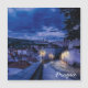 Painting of street at night in Prague, Czech Republic. Street with beautiful view on historic city center in Prague.