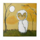 Evening Stroll, Whimsical Woodland White Owl Art Tile