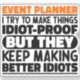 Funny Event Planner Sayings "Event Planner I Try To Make Things Idiot Proof But They Keep Making Better Idiots". Grab this Funny Event Planner design as a funny gifts for an awesome mum, dad or friend.