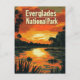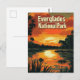 Discover the wild beauty of Florida’s Everglades with this vintage-inspired postcard. Featuring classic retro artwork, this design brings to life the park’s unique wetlands, with lush greenery, winding rivers, and a breathtaking sunset over the horizon. Majestic herons soar above, while an alligator glides through the peaceful waters, capturing the untamed spirit of the Everglades.