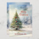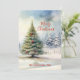 A beautiful evergreen pine tree, decorated with bright red baubles for Christmas, shines out in the snowy wooded landscape. Such a pretty classical sight; it brings a feeling of peace and happiness. Here it is for you on this vintage, watercolor flat holiday card that you can enjoy sending to friends and loved ones for the winter holiday season.