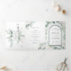 Evergreen & Cotton Flowers Elegant Wedding Photo Tri-Fold Invitation