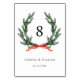 Watercolor evergreen wreath table number with names and date. For more advanced customisation of this design, please click the BLUE DESIGN TOOL BUTTON above!