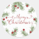Evergreen greetings Christmas round sticker. Customisable. Part of a Christmas collection.