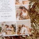 An elegant and timeless Christmas Holiday card. This design showcases a collage of 10 handpicked photos, a combination of six square, two landscape, and two portrait photos arranged around the edge of the card. In the middle of the card, 'Merry Christmas' is written in chic script calligraphy. Below, there is space for a custom holiday message. There is a delicate pine sprig separating the two sections of text. Your family name is signed 'with love' underneath the Christmas letter. As you turn the card over, you'll find a lush green pattern of botanical foliage, including eucalyptus greenery, cotton, and pine boughs. This design has a modern minimalist style but keeps a warm and inviting feel with the multi-photo collage. Perfect for showcasing a variety of joyful moments. You can include photos from family gatherings, cherished milestones, memorable vacations, or pet portraits. Choose this card to reflect on 'what a year' it has been, sharing your favourite memories from the past year with friends and family this holiday season. Matching items are available in the collection linked on this page. Message me through the button below with any questions. Browse our store for more Christmas photo cards.