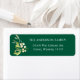 Watercolor mistletoe sprig on evergreen background. Return address idea for Christmas cards and correspondence.