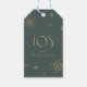 Elevate your gift wrapping with our "Modern Joy Snowflake" holiday gift tag. It features the word "JOY" adorned with elegant snowflakes in simulated gold foil against a deep evergreen colour. This personalised tag adds a touch of magic to your gift, embodying the joy of the season and the delight of sharing.
