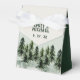 Elements: watercolor painting, gradient background, fun outdoorsy serif and script typography. Colours: hunter green, forest green, white, off white, black Themes: mountains, forest, nature, camping, hiking, outdoorsy, rustic, whimsical, botanical, woodland, country. Collection: Evergreen Mountain Forest Green White Black Wedding Suite. Product Type: Favour Box - Tent