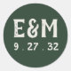 Evergreen Mountain Forest Green White Initials Classic Round Sticker